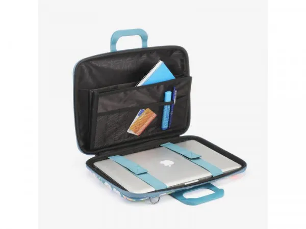 | Karakteristike | Čvrsta EVA struktura, unutrašnji jastučići za zaštitu, elastične trake za fiksiranje laptopa, dodatni unutrašnji džepovi, ručke obložene silikonom. |