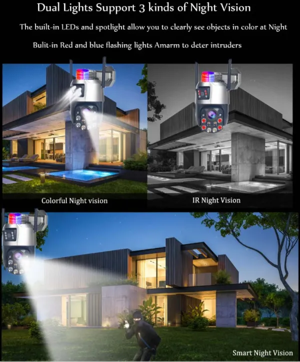Model: CAM-IP6MP-EP5-12X 6MP H.265 WiFi Camera, 4.5 Inch, ICSEE App 6pcs IR LED + 6cs White LED 3.6mm+12X Zoom ( 6-36mm Motorized ), Alarm Siren RJ45, Onvif P2P, Smart Human Detection IP66, Two Way Audio, DC12V 3A, Support TF Card Smart IR&Color Night Vision, Pan 355°, Tilt 90° Slika Poboljšanje slike: BLC, HLC, 2D/3D DNR Podešavanja slike: rotiranje, ogledalo, preokretanje slike, maska privatnosti, zasićenost, osvetljenost, kontrast, oštrina, pojačanje, balans bele podesivi klijentskim softverom ili web pretraživačem Video Brzina kadrova: Glavni tok: 2304*2592@12fps; Sub-stream: 640*720@12fps Rezolucija: 6MP (3MP+3MP) Video kompresija: H.265 Brzina prenosa video zapisa: 512Kbps – 6Mbps, VBR/CBR Smart Features Detekcija pokreta: Da Inteligentna analiza: detekcija ljudi, praćenje ljudi, alarm za upad, detekcija prelaska linije Audio Audio: Dvosmerni audio interfon Audio standard: G.711; Podržava dvosmerni audio Mreža Mrežna memorija: NVR, Full HD, memorijska kartica Mrežni protokol: Podržava mrežne protokole kao što su HTTP/RTSP/DHCP/NTP/ONVIF/P2P i višestruke NVR protokole za priključivanje P2P Cloud Service: Da Mreža: 2.4G WIFI + RJ45 mrežni port+AP hotspot Materijal i zaštita Materijal: plastika Vodootporna: IP66 vodootporna spoljna kamera Power supply Napajanje: DC12V Konektor za napajanje: PH5,5 mm General Primena: na otvorenom, u zatvorenom Radni uslovi: (-25 C ~ 45 C) vlažnost 95% ili manje (bez kondenzacije) APLIKACIJA: Mobile Viev Android, IOS (ICSEE)