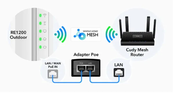 Proširivač opsega montiran na stub/zid sa IP65 kucištem i PoE, sa režimima pristupne tačke i proširenja opsega i Cudy Mesh. Potreban je ruter da radi kao kapija ispred njega. IP65, -40~65°C (-40~149°F), 4kV prenapon 24V Pasivni PoE 1× Fast Ethernet port 30 Povezani uređaji Cudy Mesh Satelit Multi-Band Simultaneous Backhaul Ethernet Backhaul Verzija modela: RE1200 Outdoor 1.0 CPU- čipset MT7628DA+MT7613B; Detalji CPU 580 MHZ Single-Core, MIPS24KEC Memorija/Stroage- Flash/ROM: 8 MB (64 Mbit) NOR; DDR/RAM: 64 MB (512 Mbit) DDR3 Bežični 5 GHz Wi-Fi brzina 867 Mbps Wi-Fi opsezi EU, SAD 2,4 GHz Wi-Fi brzina 300 Mbps 5 GHz Wi-Fi strimovi 2T2R (2×2 MIMO) 2,4 GHz Wi-Fi strimovi 2T2R (2×2 MIMO) Wi-Fi antene 2× odvojive Maksimalno pojačanje antene od 2,4 GHz 4,6 dBi Maksimalno pojačanje antene od 5 GHz 4,4 dBi Odvojivi konektor za Wi-Fi antene RP-SMA ženski Maksimalne performanse dometa: 170 m (558 stopa) Park: 150 (492 stopa) Ulica: 50 (164 stopa) Šuma: 30 (98 stopa) Interfejsi 10/100 Mbps RJ45 portovi 1 Ethernet Notes Prihvata PoE napajanje LED: Snaga, Internet, LAN, 2,4 GHz Wi-Fi, 5 GHz Wi-Fi Fizička dugmad: WPS dugme; Reset dugme Ulaz za napajanje PoE preko Ethernet porta Power Input: PoE preko Ethernet Port Snaga Power Methods- Pasivni PoE 24 V AC 110V ~ 220V Maksimalna potrošnja energije (W) 12W Potrošnja energije u stanju mirovanja (W) 2,5W Pouzdanost Zaštita od munje/prenapona 4 kV Zaštita od groma/prenapona ESD zaštita vazduha 4 kV kontakt ESD zaštita, 8 kV vazdušna ESD zaštita Radna temperatura okoline: -20 C ~ 60 C (-4 F ~140 F) Povecajte radnu temperaturu sa SIM karticom industrijske klase: -40 C ~ 65 C (-40 F ~ 149 F) Temperatura skladištenja: -40 C ~ 70 C (-40 F ~ 158 F) Radna vlažnost: 0% ~ 100% bez kondenzacije Vlažnost skladištenja: 5% ~ 90% bez kondenzacije Snaga bežičnog Wi-Fi prenosa CE: <20 dBm (2,4 GHz) <23 dBm (5 GHz) FCC: <30 dBm (2,4 GHz) 5 GHz) Pouzdanost Metode uzemljenja: Utikač sa tri zupca Mehanička instalacija u višeslojnom lancu: Preporučujemo da instalirate manje od 3 repetitora u bežični lanac. Instalacija: Zidna montaža; Pole-Mounting Materijal kucišta: Plastika Dimenzija tela uređaja: 240×100×53,7 mm 9,45×3,94×2,11 inča Svaka antena: 197,5×21,6×15,5 mm 7,78×0,85×0,61 inča Težina proizvoda u EU: 420 g (14,82 oz.) Power Basic Power Saving: 0 Sadržaj paketa: Glavni proizvod Odvojive antene PoE adapter Kabl za napajanje Oprema za montiranje Eternet kabal Uputstvo za instalaciju Informacije o poručivanju Težina maloprodajnog pakovanja u EU: 740 g (14,82 oz.) Maloprodajno pakovanje Dimenzije 324×107×86 mm; 12,76×4,21×3,39 inča Neto težina kartona u EU: 14,8 kg (32,63 lbs) Bruto težina kartona u EU: 15,7 kg (34,61 lbs) Jedinice po kartonu 20 Karton Dimenzija 46×33,7×45 cm