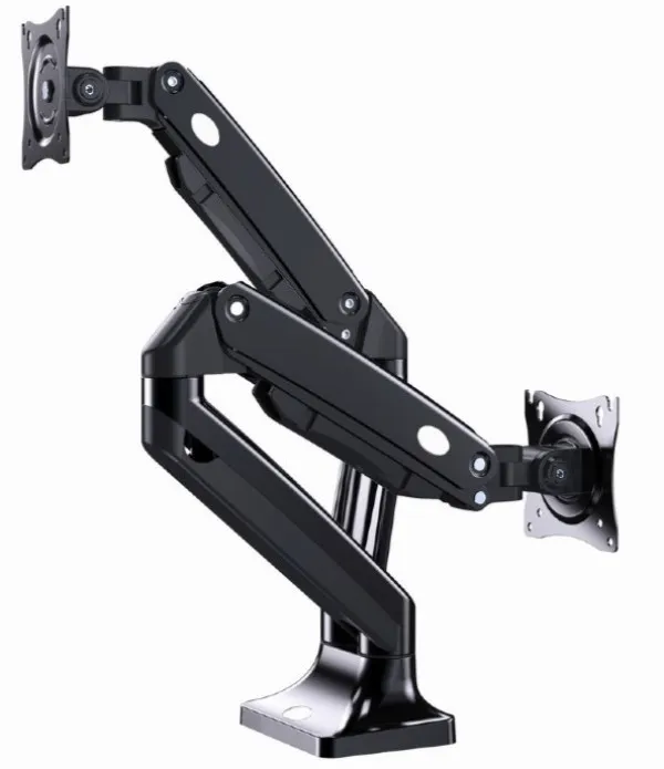 Ruka za montažu stola sa punim pokretom sa 2 displeja, 17”-35” Savršeno postavite ekran Lagan i nagibni dizajn - Montaža za sto za monitor sa duplim nosačima monitora - Ruke punim pokretom rotiraju, izvlače i uvlače, naginju se da bi promenile uglove čitanja i omogucavaju rotiranje ekrana iz režima pejzažnog u portret, itd. - Omogucava lako ergonomsko pozicioniranje za smanjeno opterecenje - Radi sa skoro svim LCD monitorima (max. 35") - Izdržljive podesive gasne opruge pogodne za monitore od 3 - 10 kg - Snažna stezaljka za radni sto ili otvor za lako i sigurno pričvršcivanje na vaš sto - VESA kompatibilan (100 x 100 mm i 75 x 75 mm) Materijal: aluminijum i čelik Veličina ekrana: 17 - 35" VESA: 75 x 75 - 100 x 100 mm Nagib: ±50° Rotacija ekrana: 360° Dužina ruke: 515 - 587 mm Visina ekrana: 155 - 470 mm Dva načina sastavljanja Kapacitet težine: 3 - 10 kg / 6,6 - 22,2 lbs (po monitoru)
