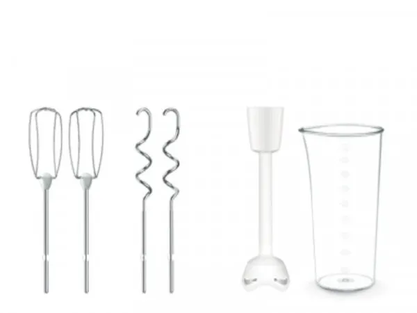 Ručni mikser svestranog dizajna i snažnog motora 500 W Tefal Mix HT461138 nudi 5 brzina i turbo gumb. U paketu ćete pronaći dve metlice, kao i dve kuke za gnječenje od kvalitetnog nehrđajućeg čelika, pogodan za pranje u mašini za sudove