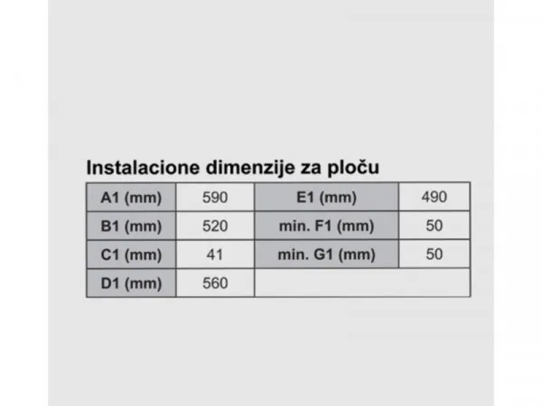 Dimenzije ploče (ŠxVxD) 590x41x520 mm